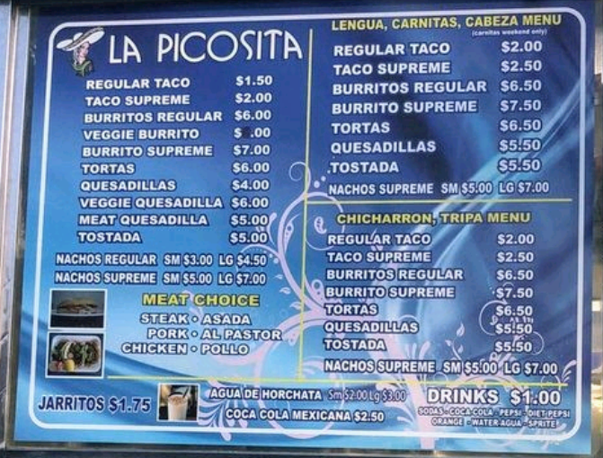 La Picosita offers a straightforward and inviting menu centered around classic Mexican street food that feels just right for casual, anytime dining. The focus is on satisfying bites like their regular Asada Taco, Carnitas Tacos, and Tacos Al Pastor, alongside comforting options such as Chicken Quesadillas and Lengua Tacos. These selections provide a well-rounded taste of Mexico’s rich flavors without complexity or fuss.